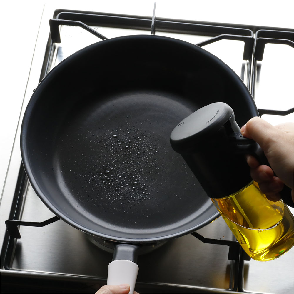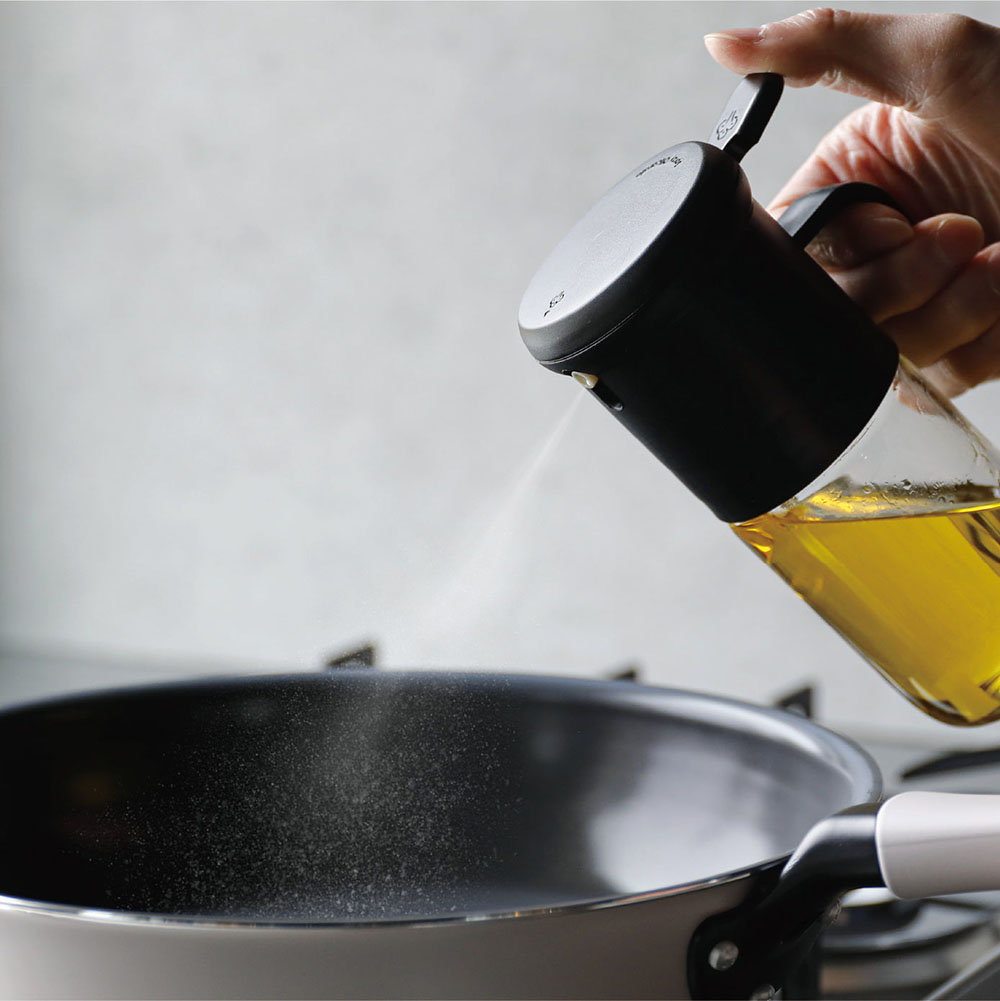 只需輕輕一按的「耐熱玻璃按壓式噴油罐」,一按即可噴出約 0.5ml 的油量,即使少量也能夠有良好的包覆效果,減少烹調時的浪費與不均。不僅能夠避免使用過多的油,還能達到省時又健康的料理效果。採用耐熱玻璃製成,不易殘留氣味,使用起來乾淨衛生。