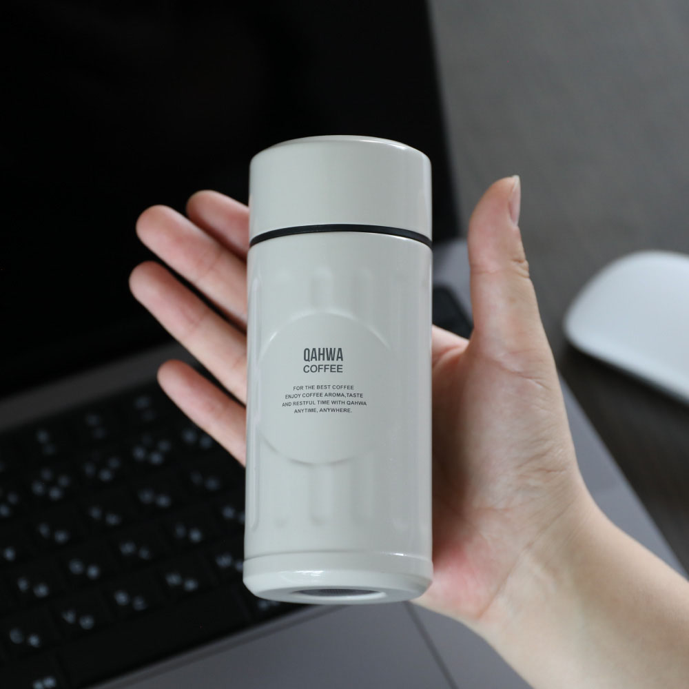 QAHWA mini精品咖啡專用保冷保溫瓶,mini輕巧尺寸能輕鬆收納於包包中,非常適合通勤或短暫外出使用。內層採用鐵氟龍不沾加工處理,好清洗不易殘留咖啡氣味和污漬,寬口設計能夠充分感受咖啡散發出的香氣並且可輕鬆放入冰塊。