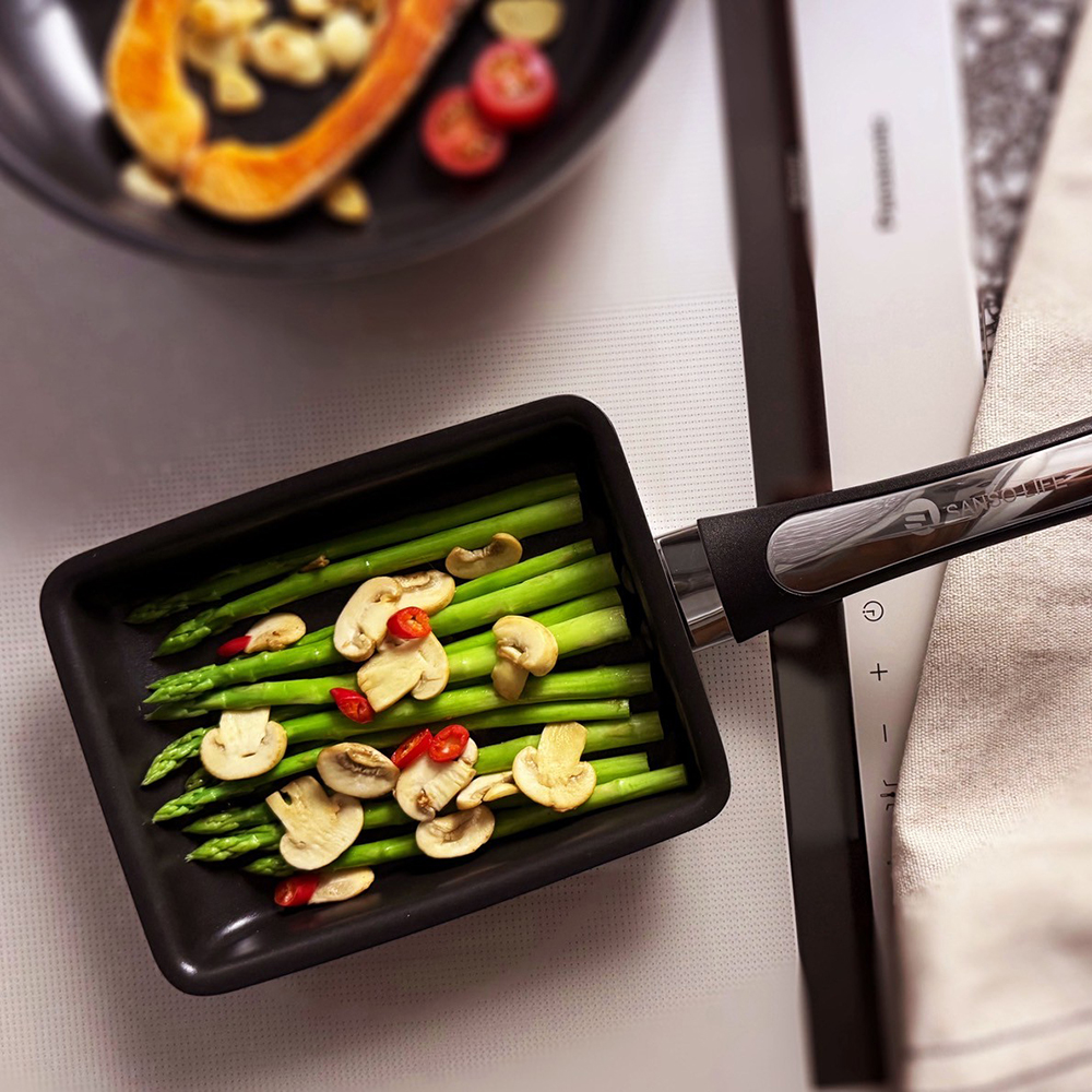 一款即使不擅長烹飪也可以輕鬆操作的迷你鍋具,一早使用大炒鍋做菜料理好麻煩,此款玉子燒鍋非常適合製作厚煎蛋或玉子燒料理,輕鬆完成中午的便當菜色,食物也可直接擺盤上桌,對於單身或小家庭而言是很實用的鍋款。