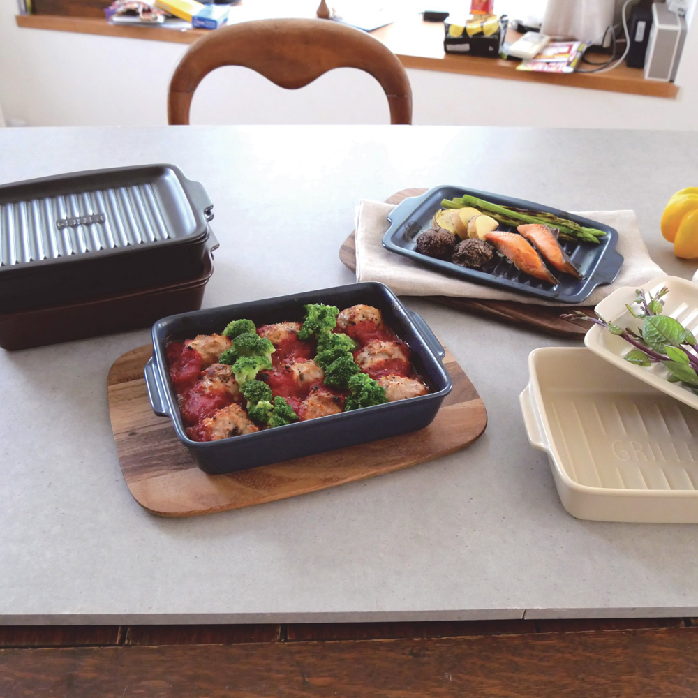 蓋子也能變成烤盤的新款烤盤。蓋子與本體可以分開使用,因此能依照不同的菜單靈活應用,料理方式更加多樣化。加蓋烹調時,內側附有容量參考線,可作為食材份量的指標。 可搭配多種熱源使用,輕鬆烹調出美味又充滿樂趣的料理。