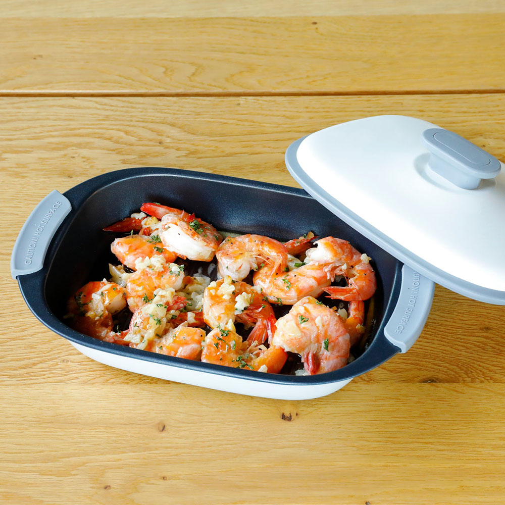 不用在旁顧火等待,即可輕鬆完成魚料理。不需預熱,簡單方便,可以在微波加熱的同時一起準備其他料理。內層為不沾塗層,料理後可使用洗碗機清洗,清洗保養非常簡單輕鬆。擁有此款微波爐專用長方形燒烤盤,就能享受多樣化料理,讓您料理更省時輕鬆。